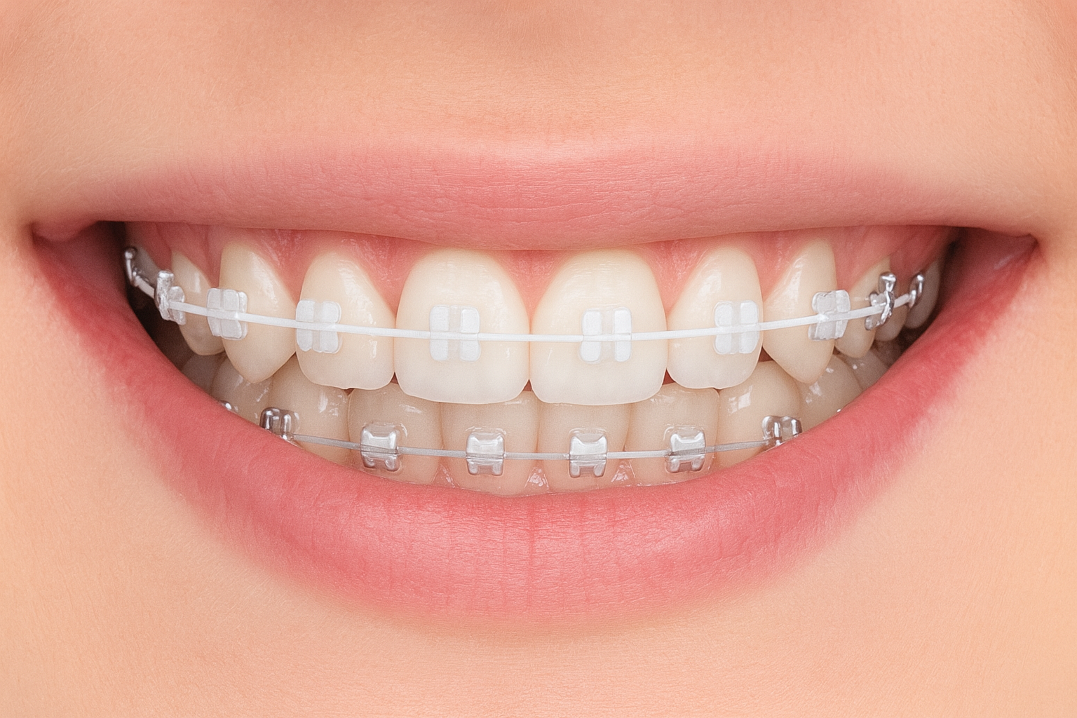 当院では透明なブラケットホワイトワイヤーにより表側からでも目立ちにくく治療できます。