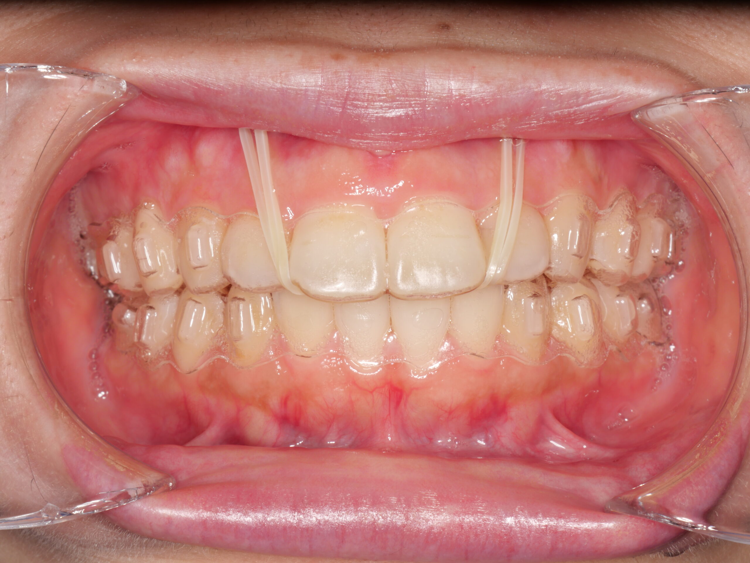 患者様ごとにカスタムメイドで製作されたアライナーを1日20時間以上装着する必要がありますが、食事や歯磨きのときは自由に取り外しが可能です。