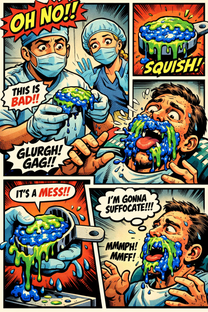 ピンク色や青色のドロドロした材料をお口いっぱいに入れられて、固まるまでじっと我慢する数分間…。息苦しさや、材料が喉に流れ込むような感覚、吐き気を催す方も少なくありません。