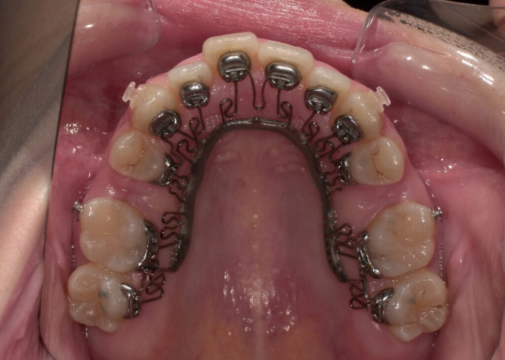 ※写真のように一時的に咬み合わせを上げたり、ゴムかけなどを併用する治療計画の場合、一時的に使用しますが追加料金はかかりません。