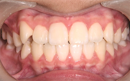治療内容 | 第1期治療で拡大治療+前歯のデコボコ治療をしていたので、表側矯正装置を使用し、非抜歯矯正にて残りの永久歯のガタガタを治療しました。 |