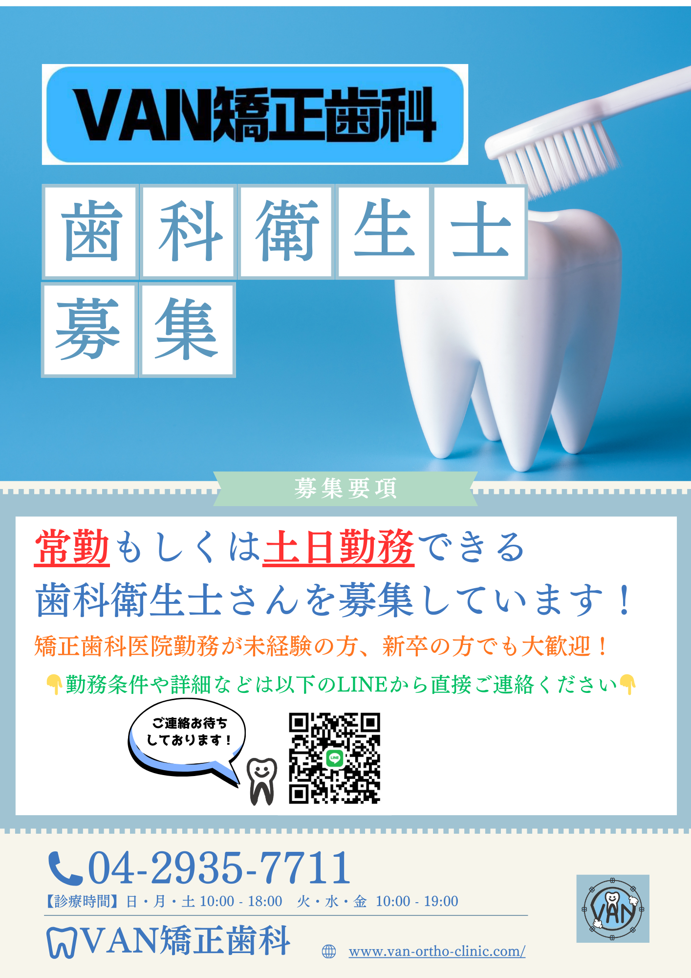 現在、VAN矯正歯科では歯科衛生士の求人募集をしています。