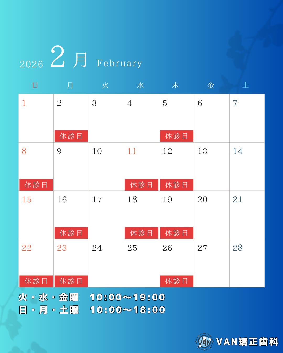2月の診療日・休診日