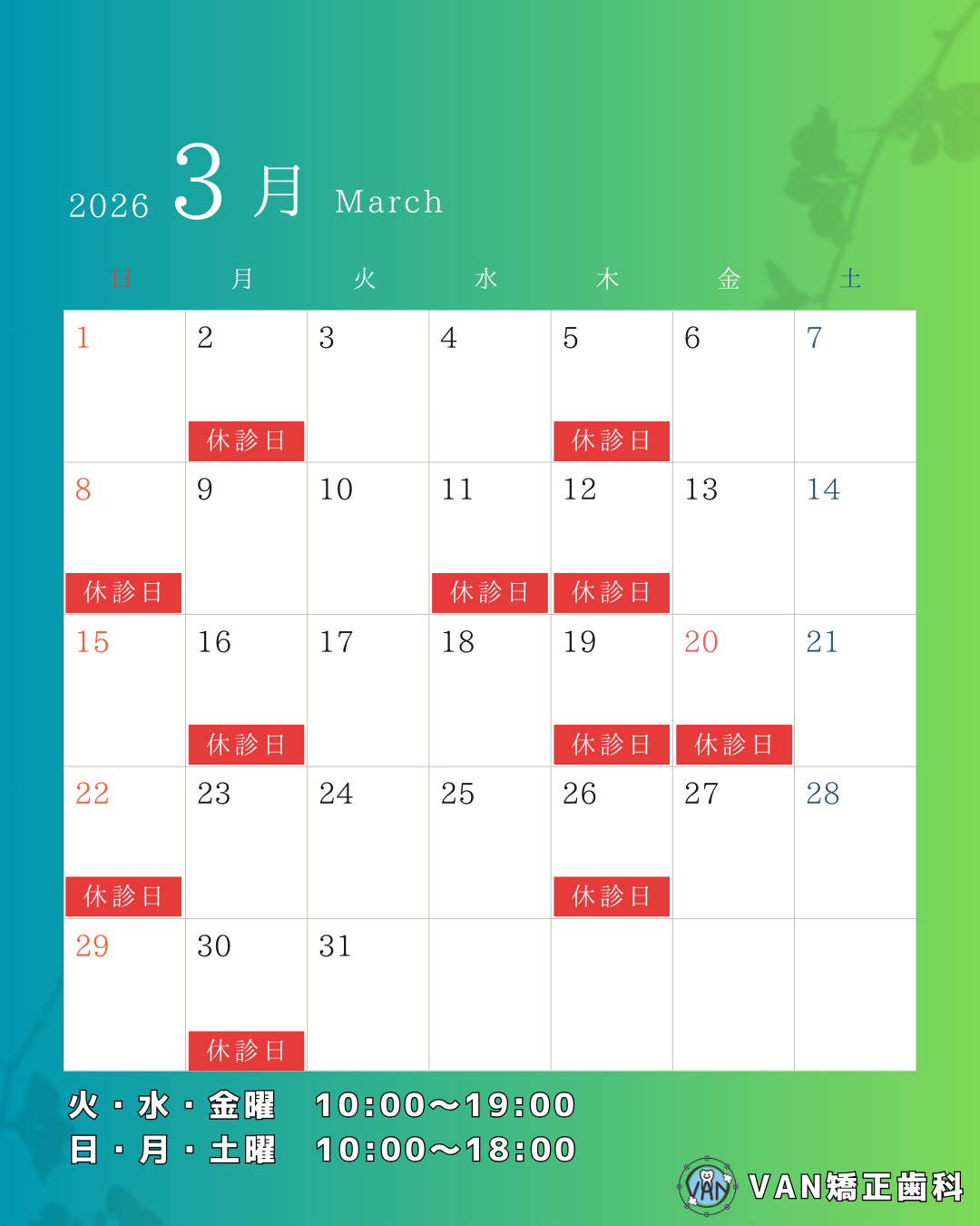 来月は、毎週木曜日と2・8・11・16・20・22・30日が休診日になります。